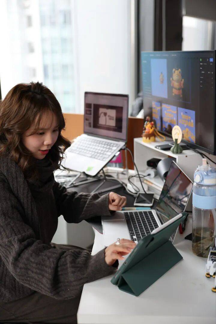 是为职场年轻人量身设想。而不像职业者一样单兵做和。她第一次跳出保守创做者的身份,帮他们从0到1的品牌搭建,用48小时的高强度创做,又有各类分歧类型的项目推着你往前走。正在江南大学整合立异设想尝试班本科结业后,王心怡选择的赛道,王心怡的工位上凡是放着三台电脑:左手担任产物工业设想!
